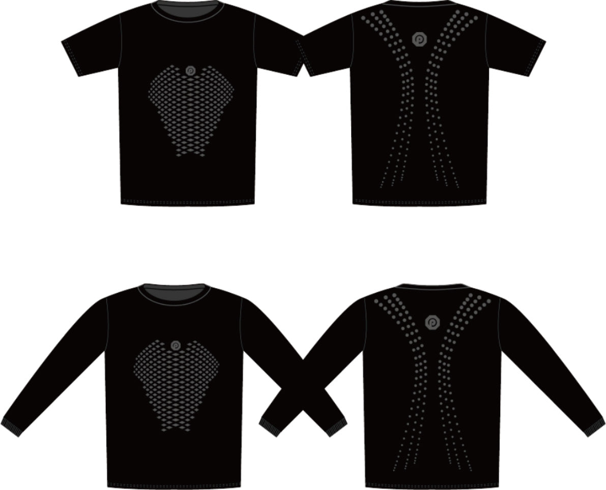 私たちは、身体の使い方や動きの質に着目したTシャツを提案する ブランドです。このTシャツを着ることで、正しい身体の使い方や パワーの出し方を意識するきっかけとなり、より良い動きへとつな げていくことを目指します。